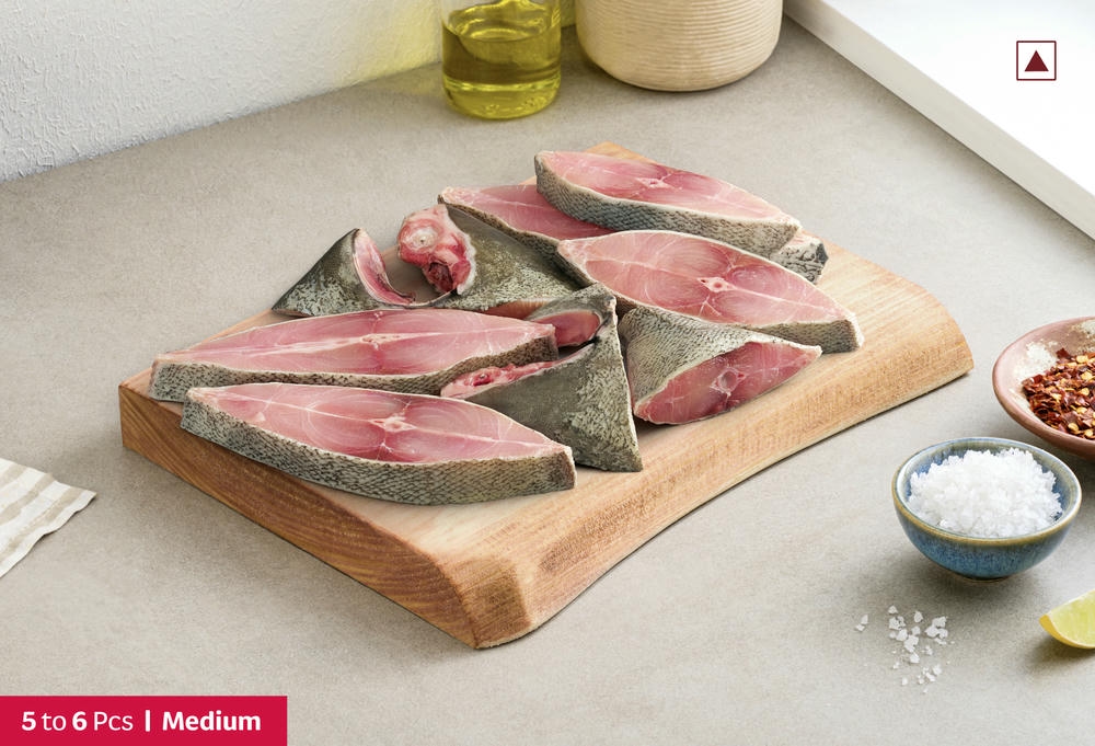 Medium-sized Black Pomfret, curry cut with the head for extra flavour.